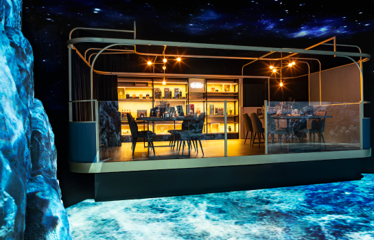 A luxurious whisky chamber hidden within a rift in time.